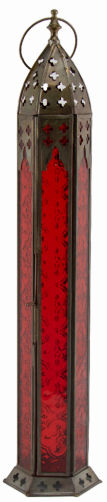 Lantern – Sikkim Metal Glass Candleholder – Brown/Red – 40cm