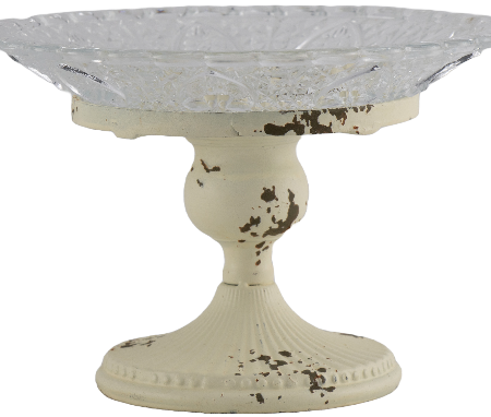 • Cake Stand Vintage Metal Base w/ Ornate Glass Plate – 17cm